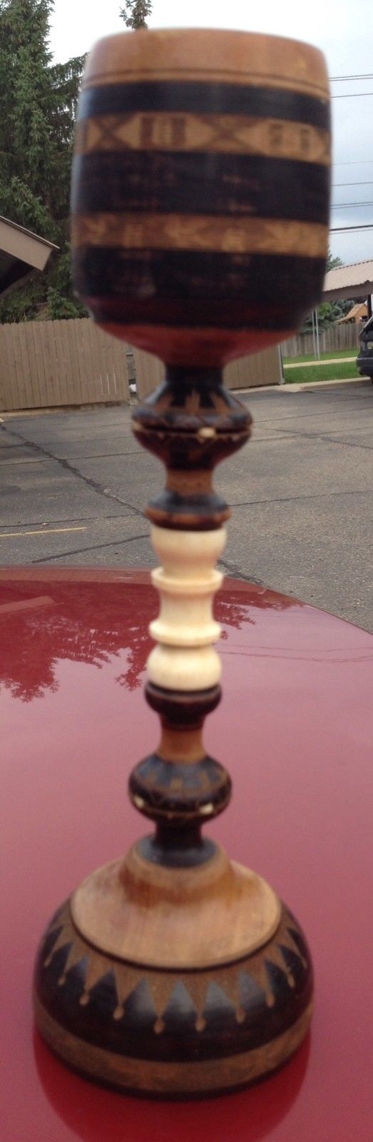 Title (ebay affiliate link): Great Old Chip Carved Turned Wood & Bone Maritime Folk Art Goblet