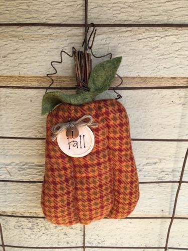 Title (ebay affiliate link): PUMPKIN HANGER - Primitive Fall Shelf Sitter - Halloween -Orange Pumpkin