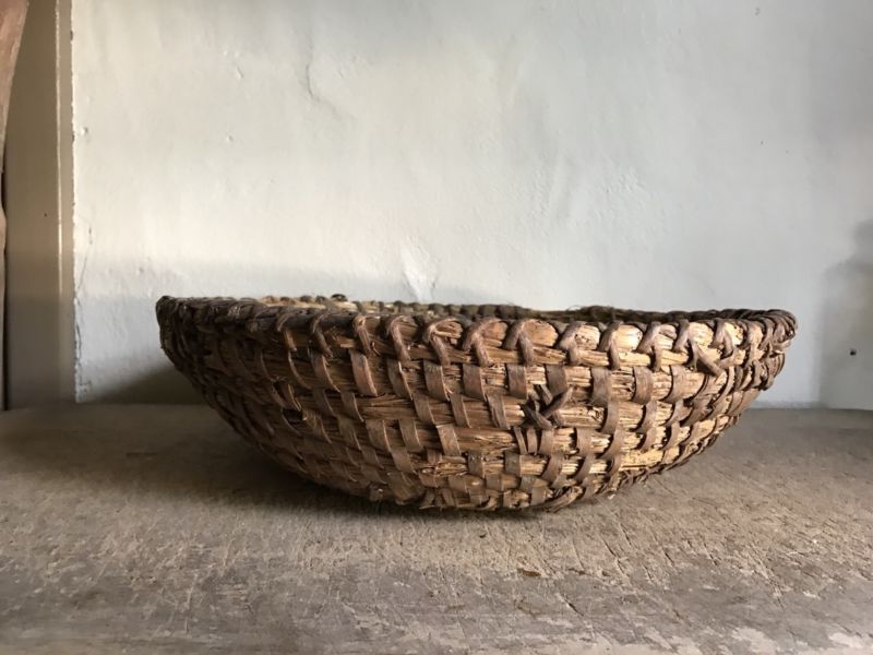 Title (ebay affiliate link): Early Antique Handmade Rye Straw Basket Patina Worn AAFA Large