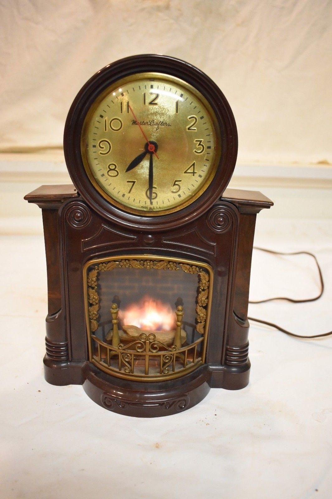 Title (ebay affiliate link): VINTAGE AMERICAN MASTER CRAFTERS ELECTRIC FIREPLACE CLOCK CLEAN AND RUNNING FINE