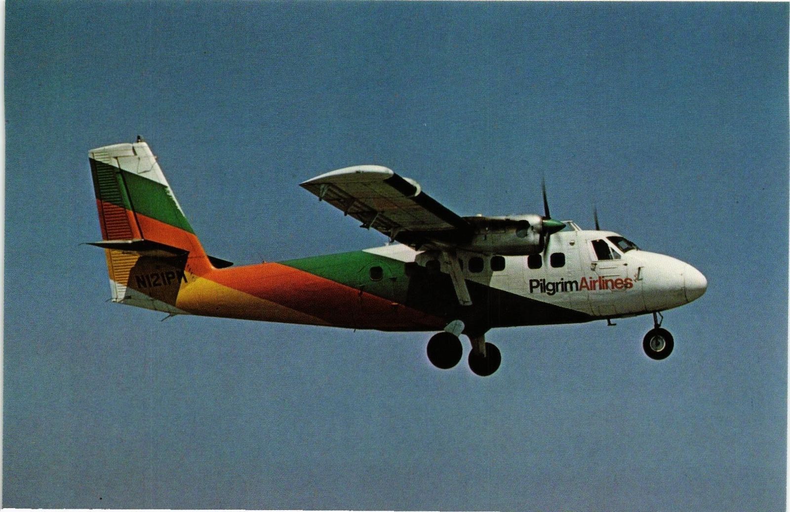 DR JIM STAMPS US POSTCARD PILGRAM AIRLINES DEHAHILLAND DHC-6 TWIN OTTER COMMUTER