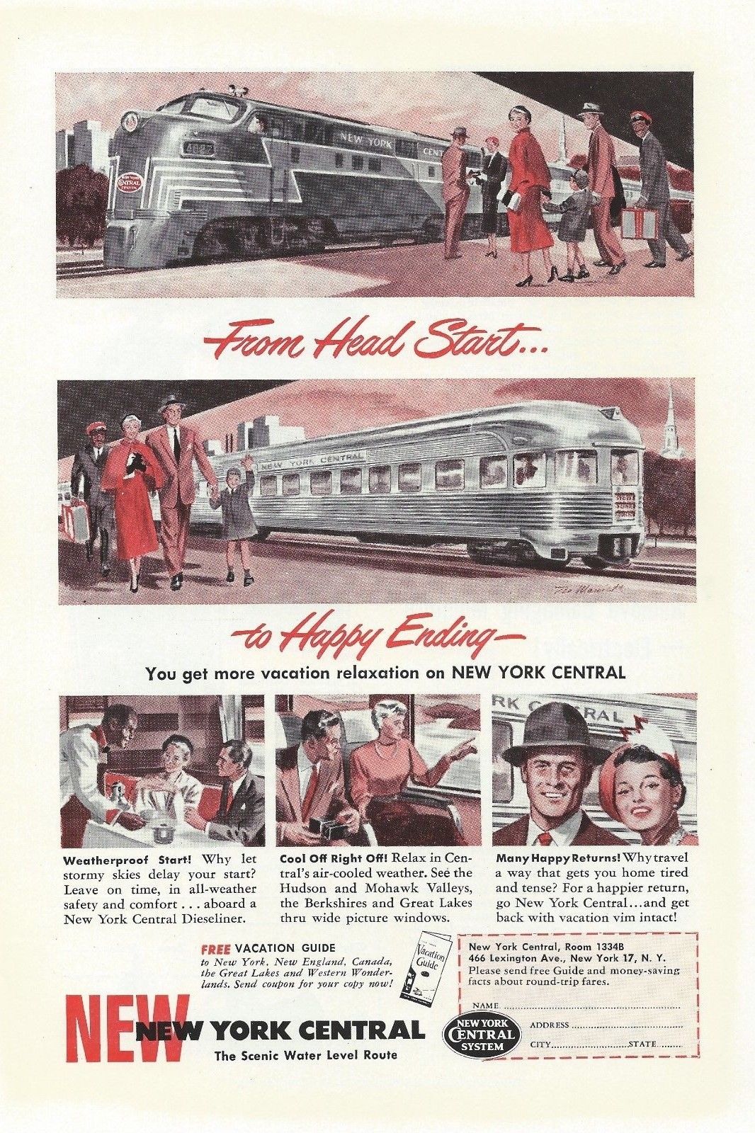 Vintage New York Central Printed Ad From Head Start to Happy Ending Vacation