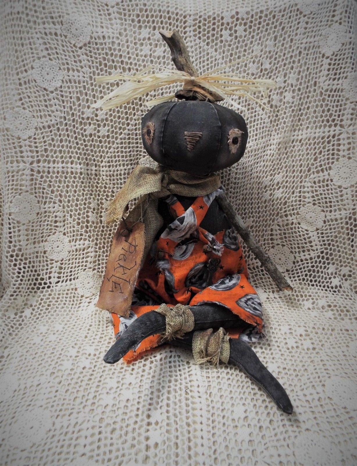 Title (ebay affiliate link): Primitive Fall Halloween Pumpkin Doll "Pickle the Punkin"