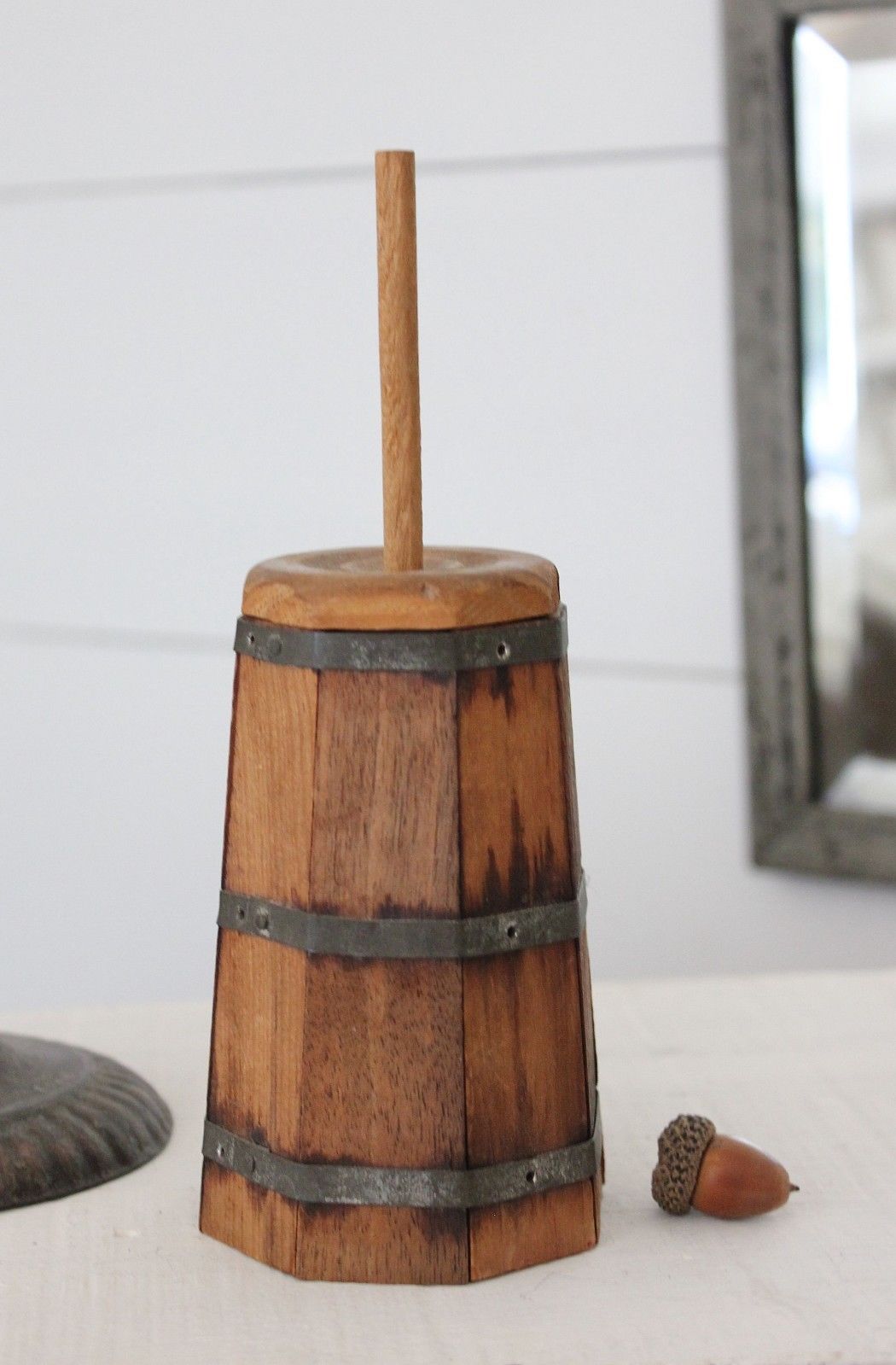 Title (ebay affiliate link): Miniature Wood Butter Churn Salesman Sample Staved Tin Child Toy Antique Vintage