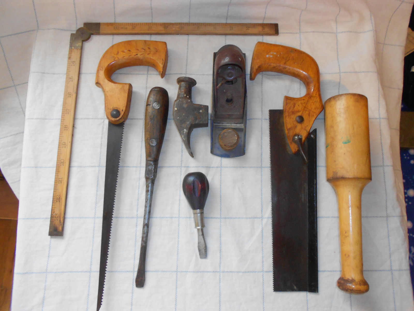 Title (ebay affiliate link): Vintage/ Antique Carpenters tool lot- backsaw, plane,and more