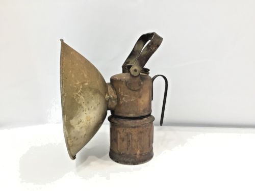 Title (ebay affiliate link): Vertical JUSTRITE Miners Carbide Cap Lamp Vintage Mining Cave Light Just Rite