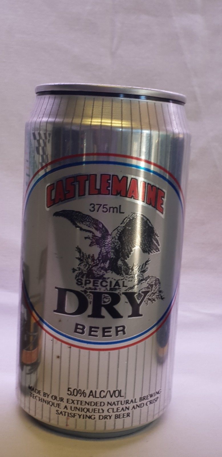 Title (ebay affiliate link): Castlemaine Special Dry Beer Can 375ml (bottom-opened)