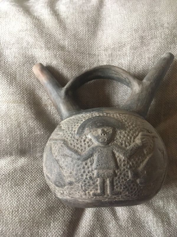 Title (ebay affiliate link): Double Spout and Bridge Drinking Vessel Peruvian Art Mayan Inca