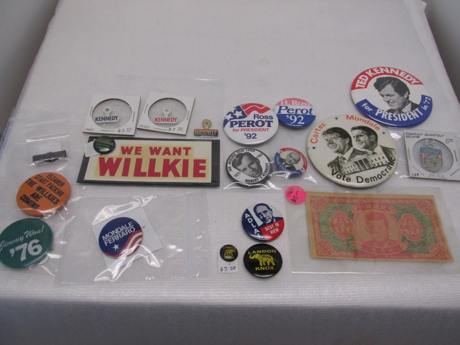 LARGE LOT OF VINTAGE POLITICAL/CAMPAIGN MEMORABILIA KENNEDY, ROOSEVELT AND MORE