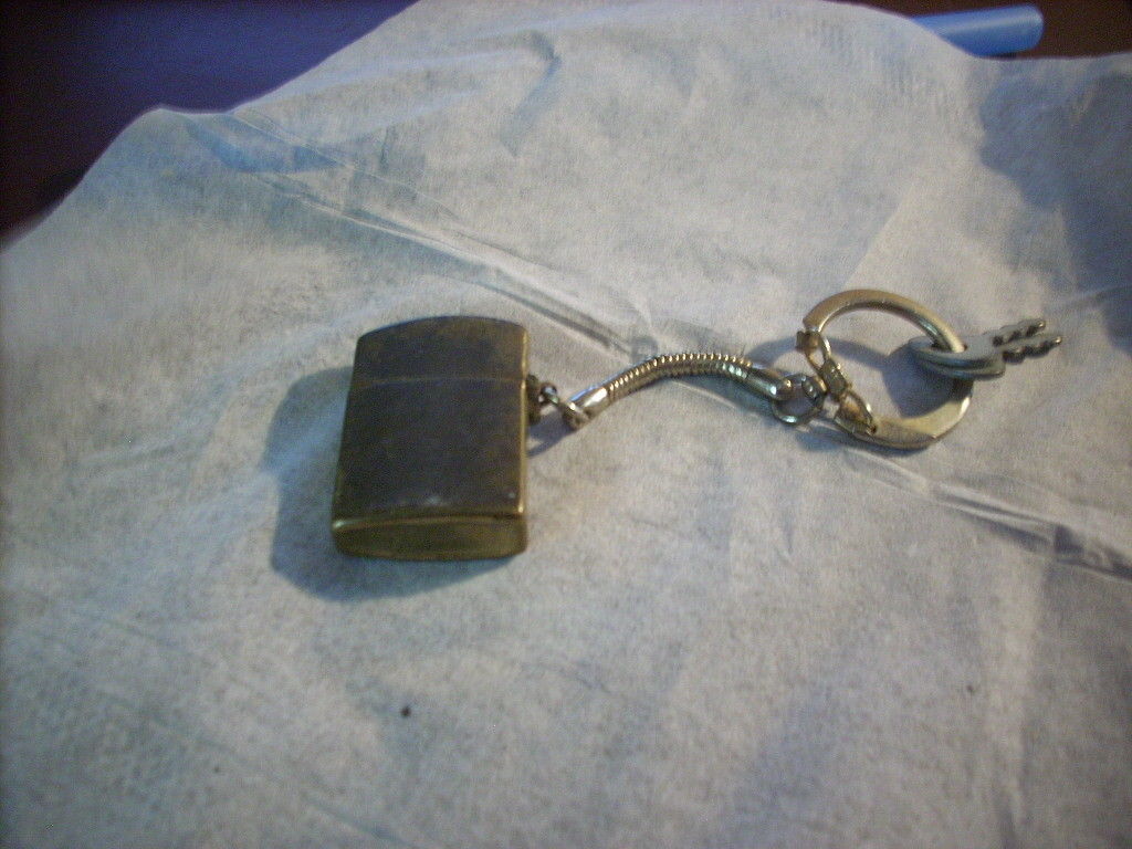 miniature vintage cigarette lighter on a keychain-it works-brass-marked JAPAN