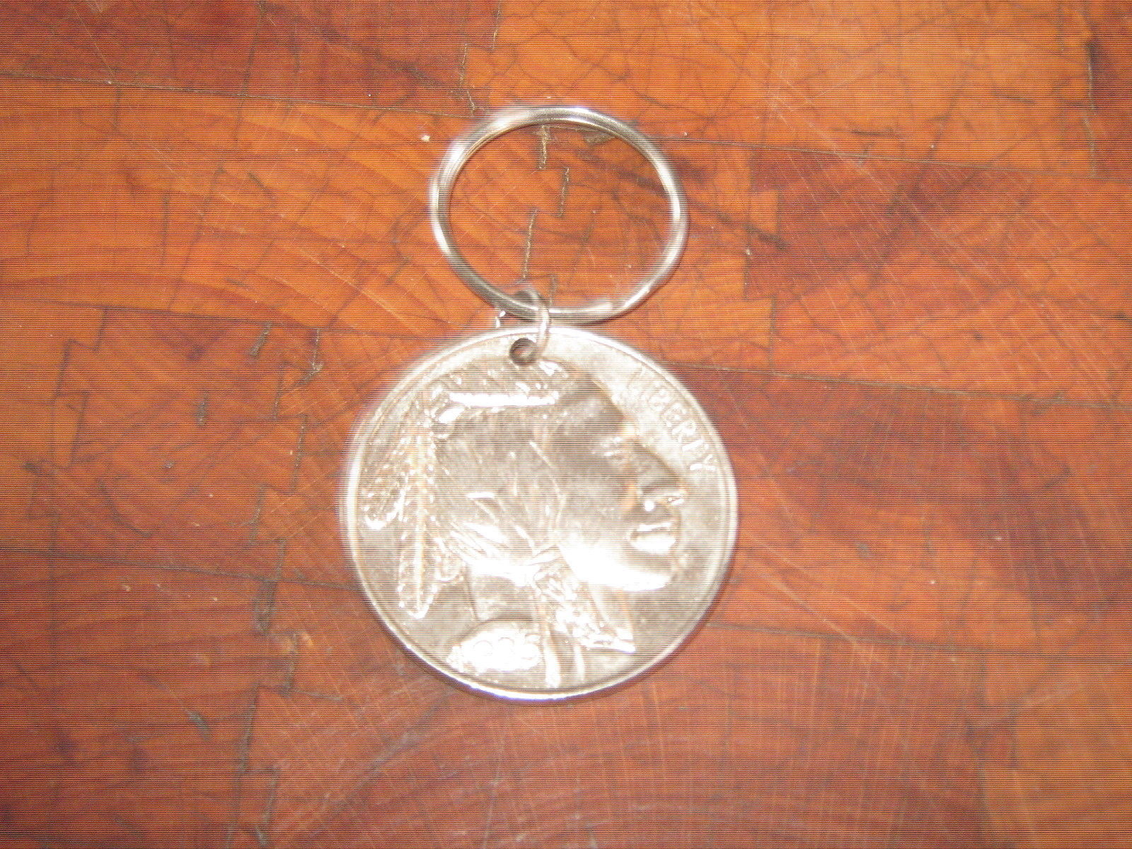 Title (ebay affiliate link): Vintage 1935 Faux Indian Head & Buffalo Nickel Key Chain 2 1/8 inch Diameter