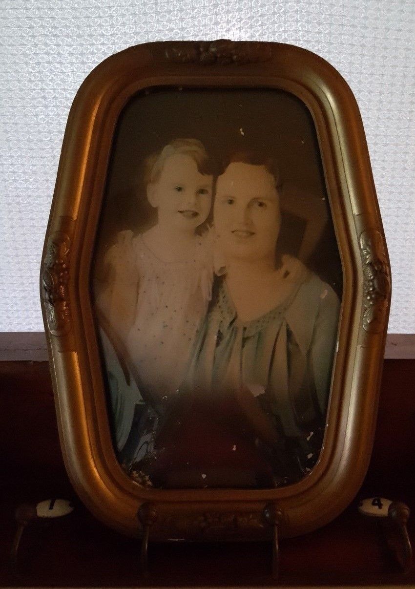 Vtg Antique Bubble Glass Gesso Decorative Picture Frame Mother child photo