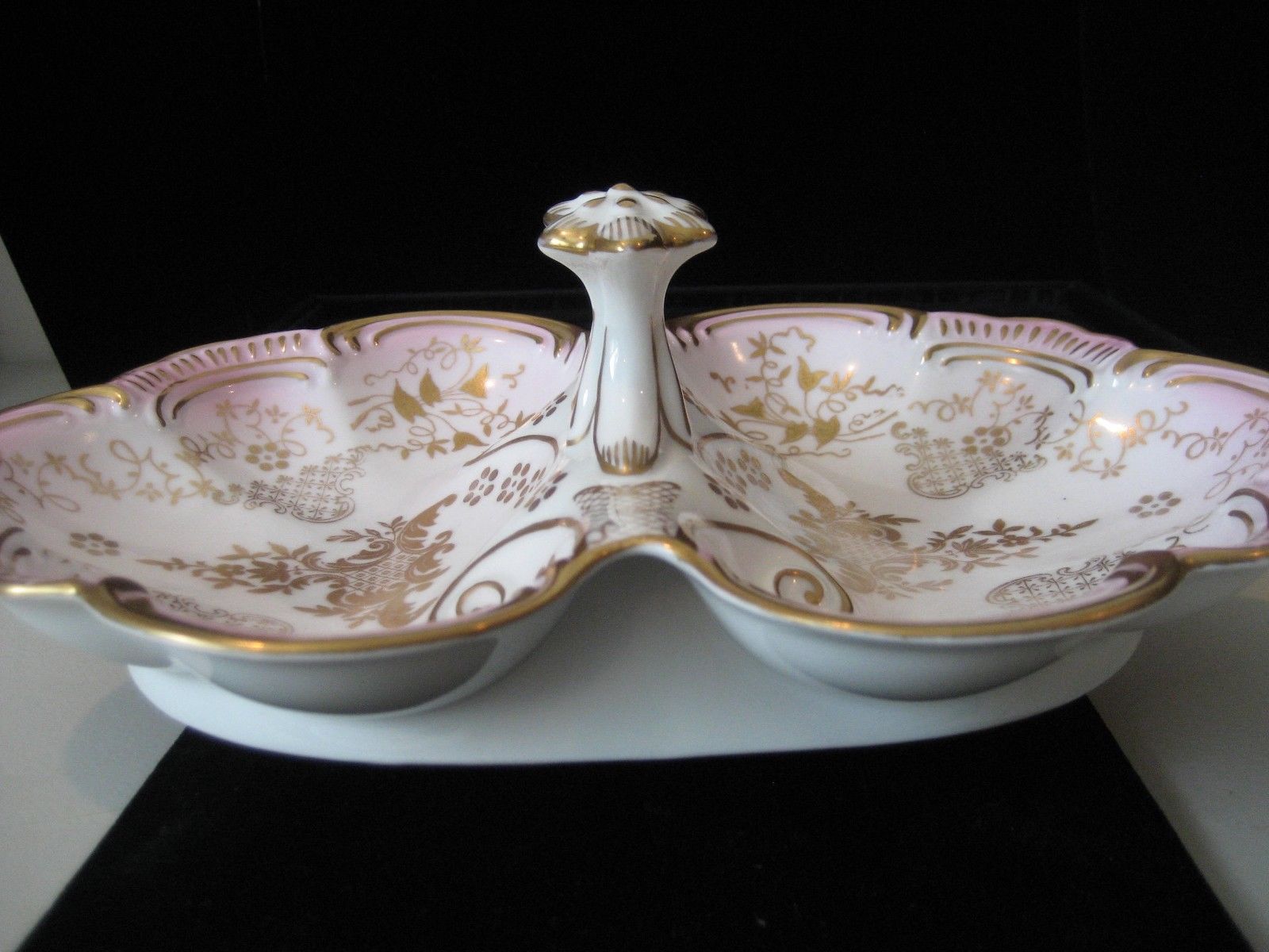 Antique -- Porcelain Candy Dish with Gold Leaf ---Made in Germany
