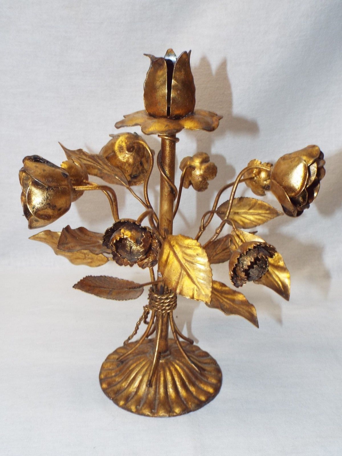 Title (ebay affiliate link): Vintage Italian Florentine Gold Gilt Metal Sculptural Rose Floral Candle Holder