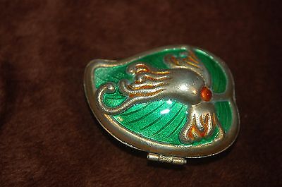 Antique Brass & Enameled Art Noveau Pill Box! Gorgeous! Blue Enamel Inside!