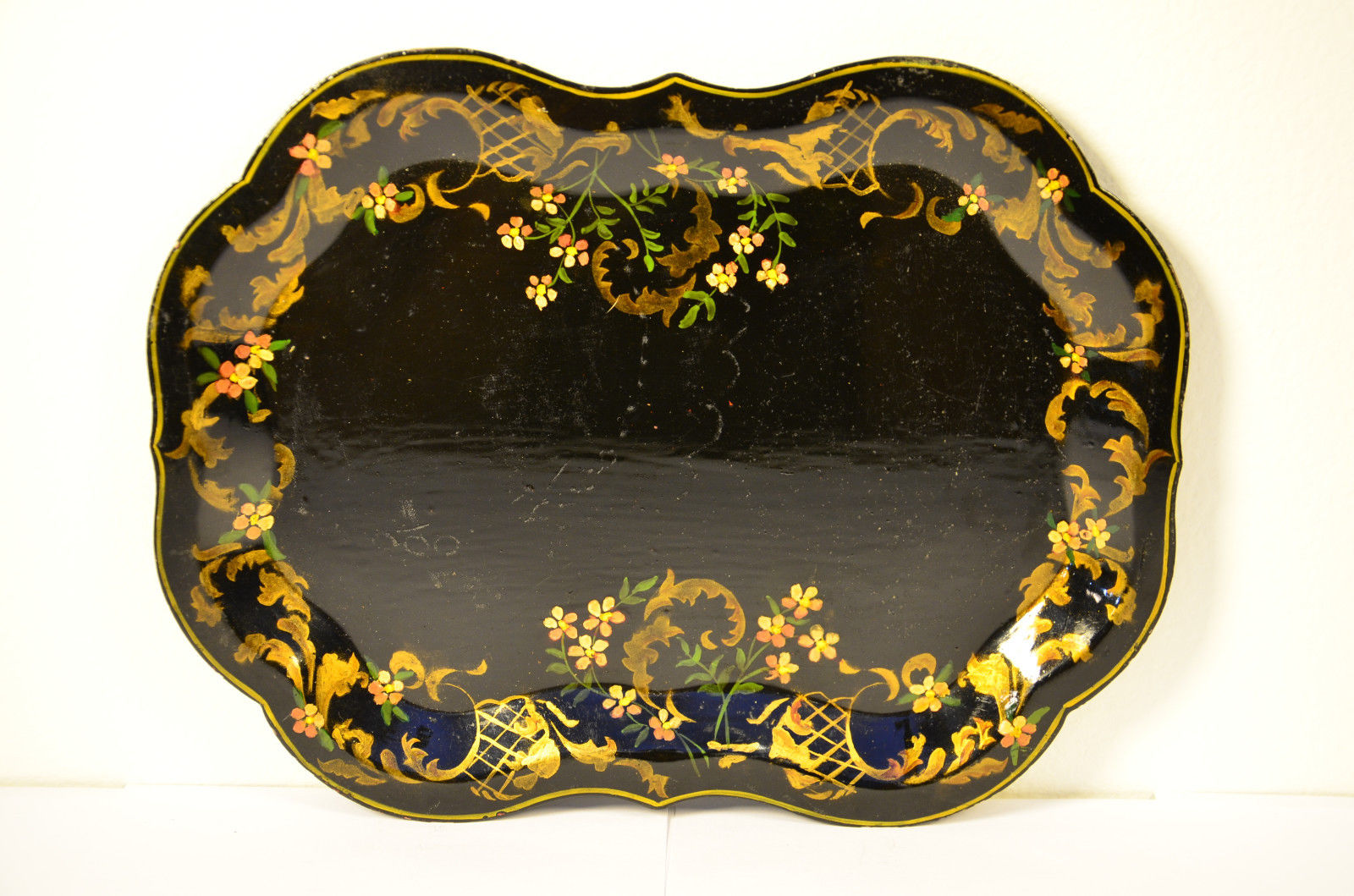 Title (ebay affiliate link): #8 Antique Victorian Hand Painted Toleware Tole Tray Gold Floral Design 9.5x7
