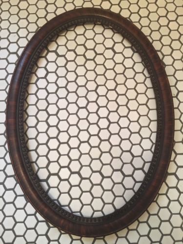 Vtg Antique Large Tiger Oak Wood w/ Bead Trim Oval Picture Frame