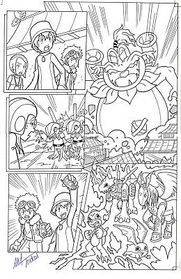 DIGIMON #02 ORIGINAL INKED COMIC PAGE SIGNED BY MICKEY JORDAN MANGA DINO COMICS.