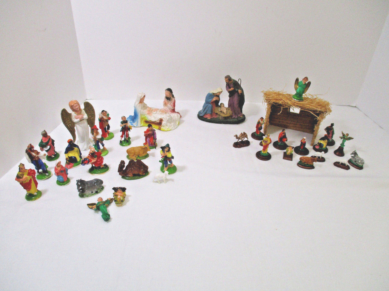HUGE LOT OF Vintage Nativity Christmas Figurines Paper Mache Composition Plastic