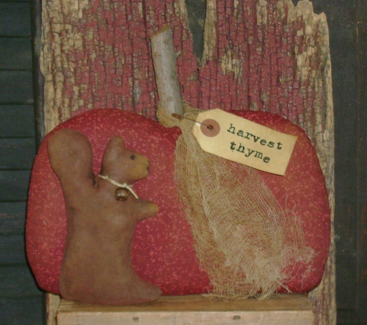 Title (ebay affiliate link): Primitive Harvest Thyme Pumpkin and Squirrel Doll ~Hanger ~ Ro''s Cluttered Attic