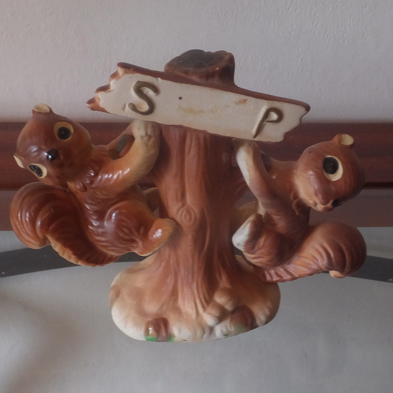 Title (ebay affiliate link): Vintage Squirrels Hanging on Tree Salt and Pepper Shakers Fairway for Charity