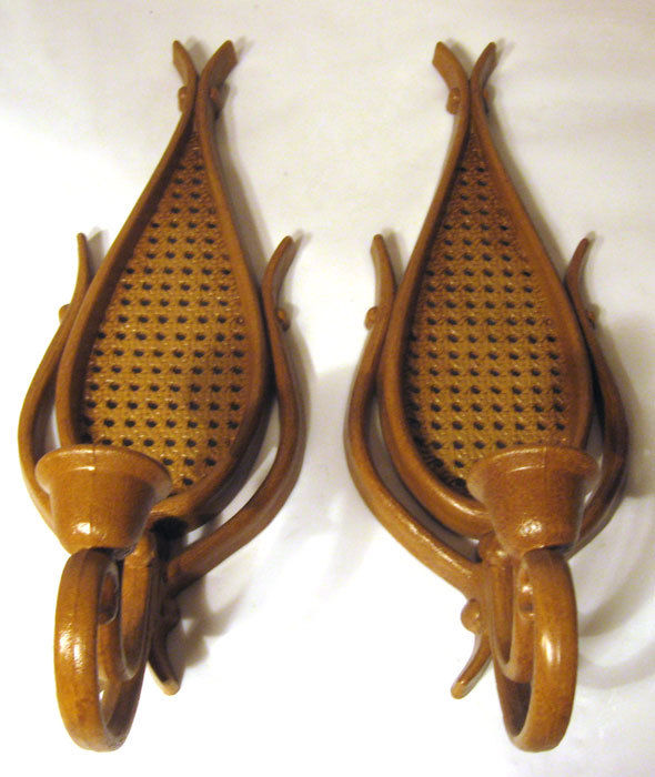 VINTAGE PAIR 1981 HOMCO RATTAN TEAR DROP CANDLE HOLDERS SCONCES #4226