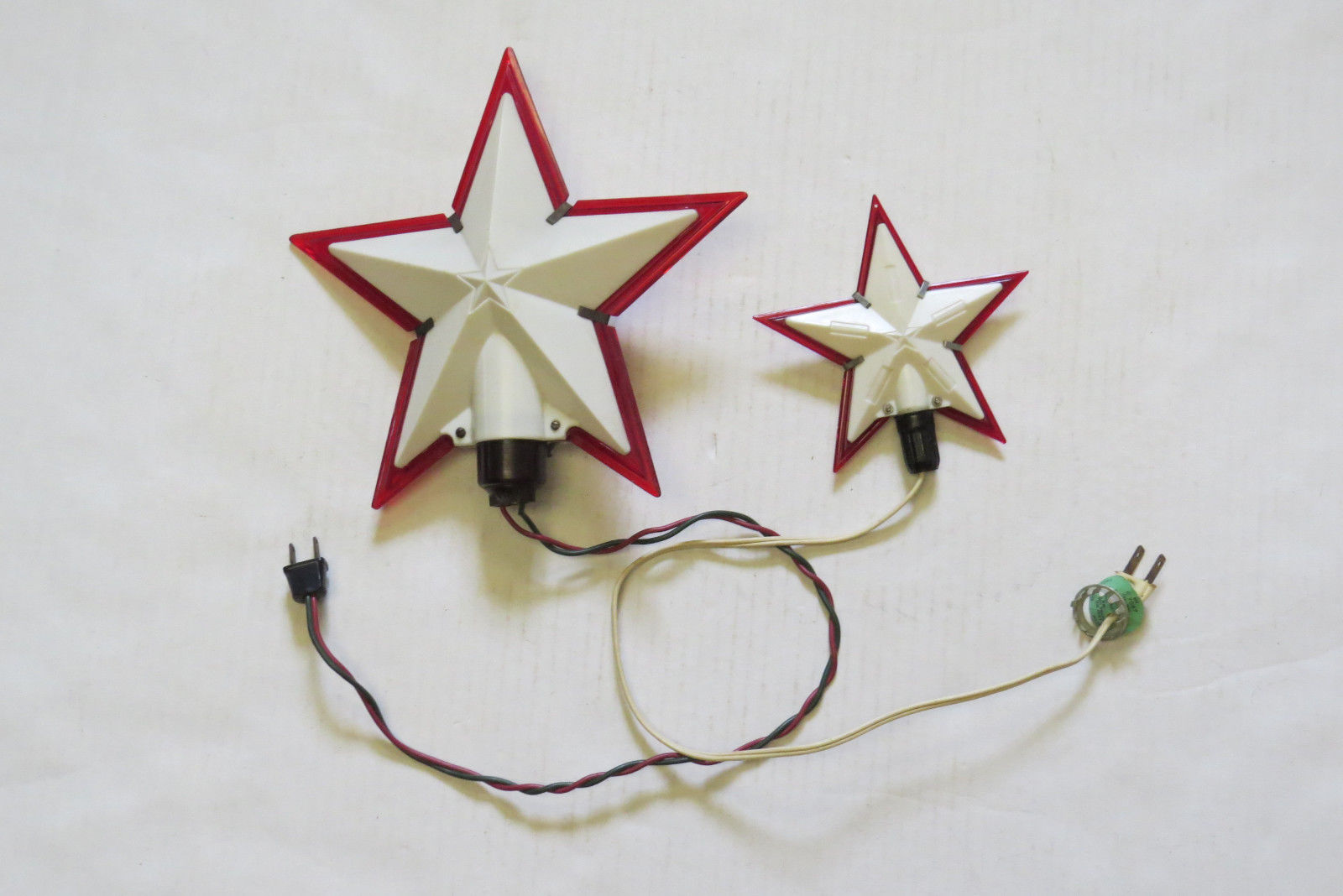 Title (ebay affiliate link): 2 VINTAGE CHRISTMAS TREE-TOPPER RED/WHITE 5-POINTED PLASTIC STAR LIGHTS