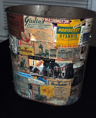 Vintage Midcentury Modern Decoupage Trash Can funky gay