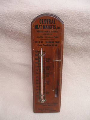 Nice Antique 12" Wood Central Meat Markets Thermometer
