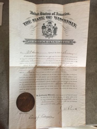 Title (ebay affiliate link): 1883 State of Wisconsin Governor Jeremiah Rusk Signed Rape Indictment Document