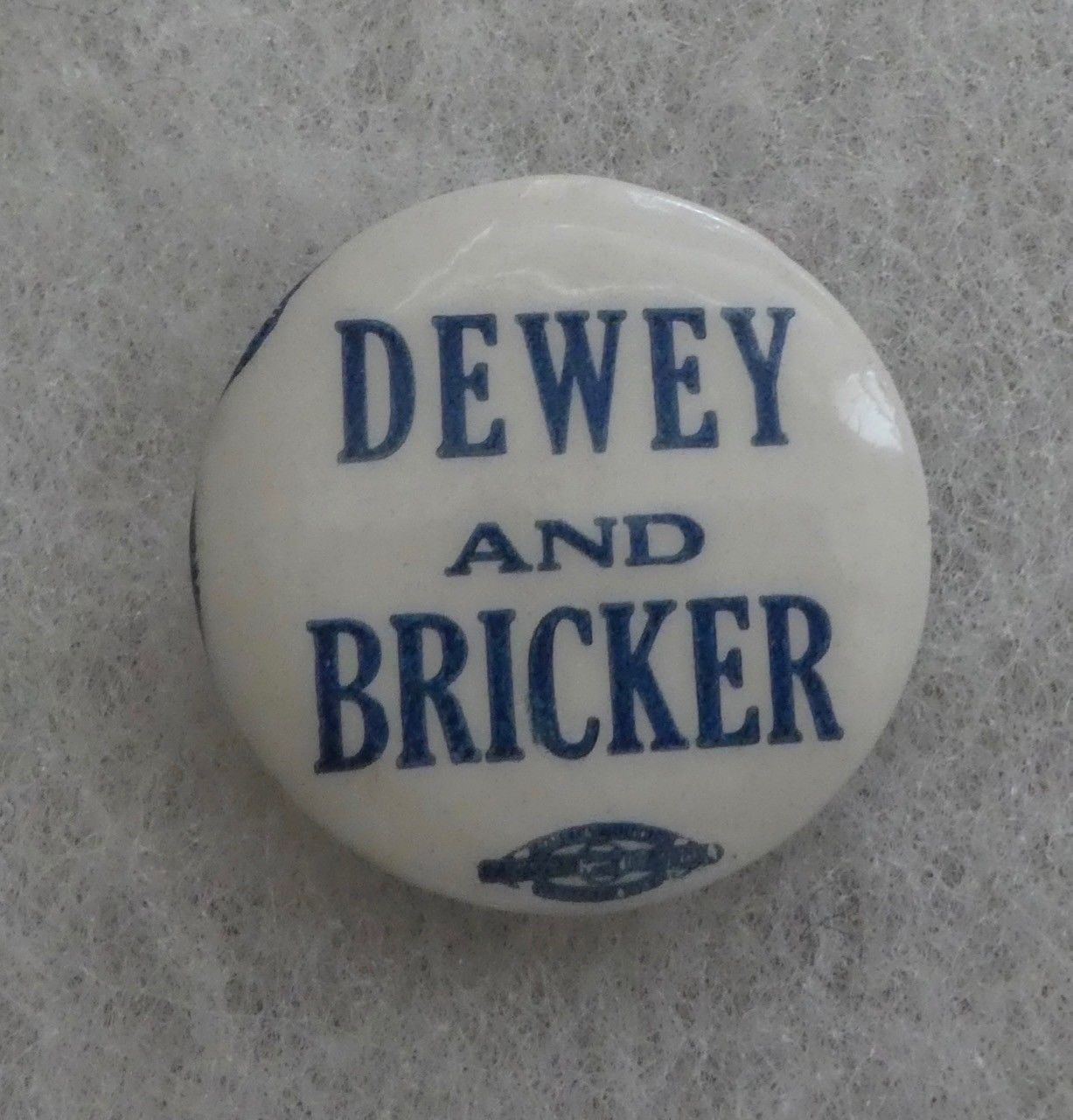 Title (ebay affiliate link): VINTAGE 1944 DEWEY - BRICKER BLUE ON WHITE CAMPAIGN BUTTON