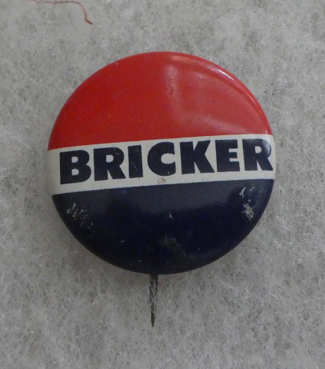 Title (ebay affiliate link): VINTAGE 1944 (JOHN) BRICKER RED, WHITE & BLUE PRESIDENTIAL CAMPAIGN BUTTON