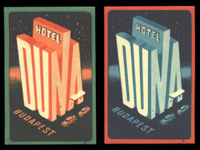 Hotel Duna BUDAPEST Hungary - 2 vintage luggage labels