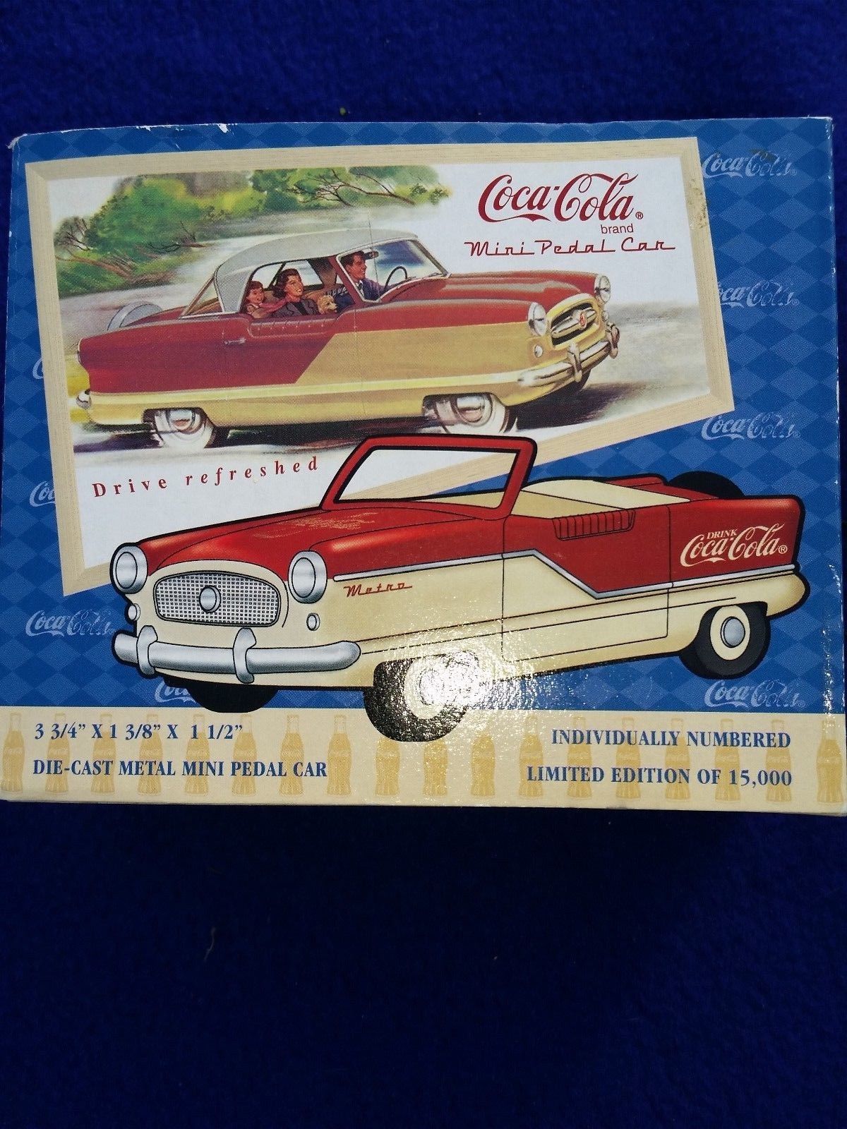Title (ebay affiliate link): Coca Cola Coke Xonex Diecast 1950s Convertible Mini Model Pedal Car 1999 NIB COA