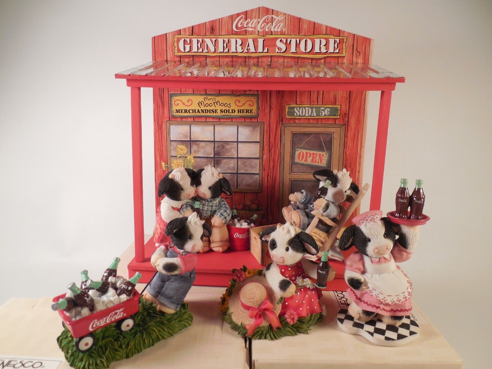 Mary''s Moo Moos Coca Cola Figurine Lot with General Store Mmm Laugh