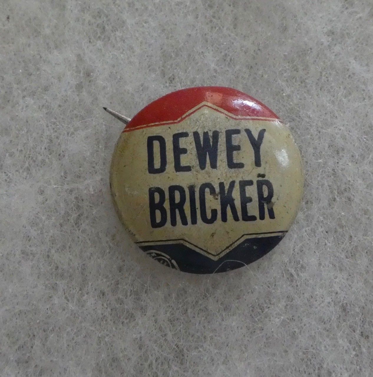 Title (ebay affiliate link): VINTAGE 1944 DEWEY - BRICKER RED, WHITE & BLUE PRESIDENTIAL CAMPAIGN BUTTON