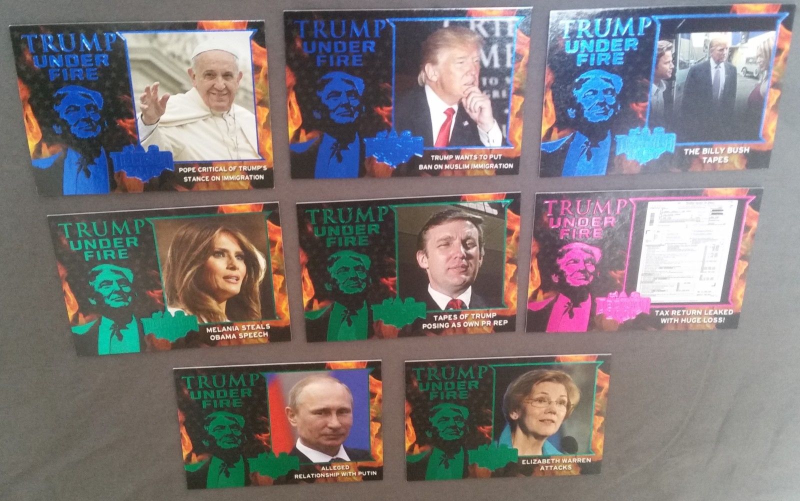 2016 DECISION 2016 TRUMP UNDER FIRE, LOT of 8 TUF FOIL POLITICAL CARD''S ~ POTUS