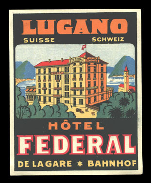 Hotel Federal LUGANO - Swiss vintage luggage label