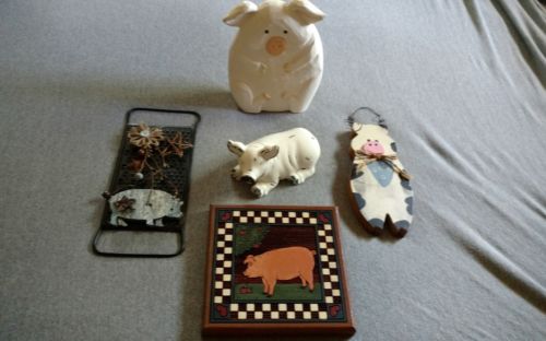 Primitive Farmhouse Pig Decor Lot Of 5