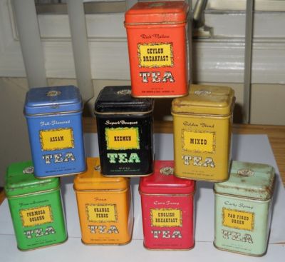 VINTAGE TEA TINS LOT OF 8 W/ CONTENTS JOHN WAGNER & SON