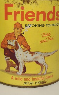 Old FRIENDS Tobacco Tin Can -Setter Dog Metal Figurine