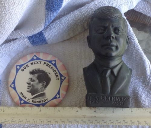 Title (ebay affiliate link): Vintage 5 1/2" John F. Kennedy Bust & Kennedy "Our Next President" Political Pin