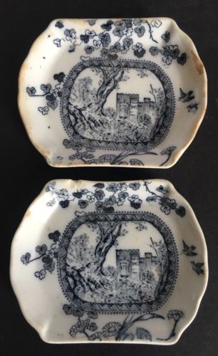Title (ebay affiliate link): Antique Brownfield ?~ Woodland Blue Pattern ~ Tea Bag Holder / Butter Pat ~ (2)