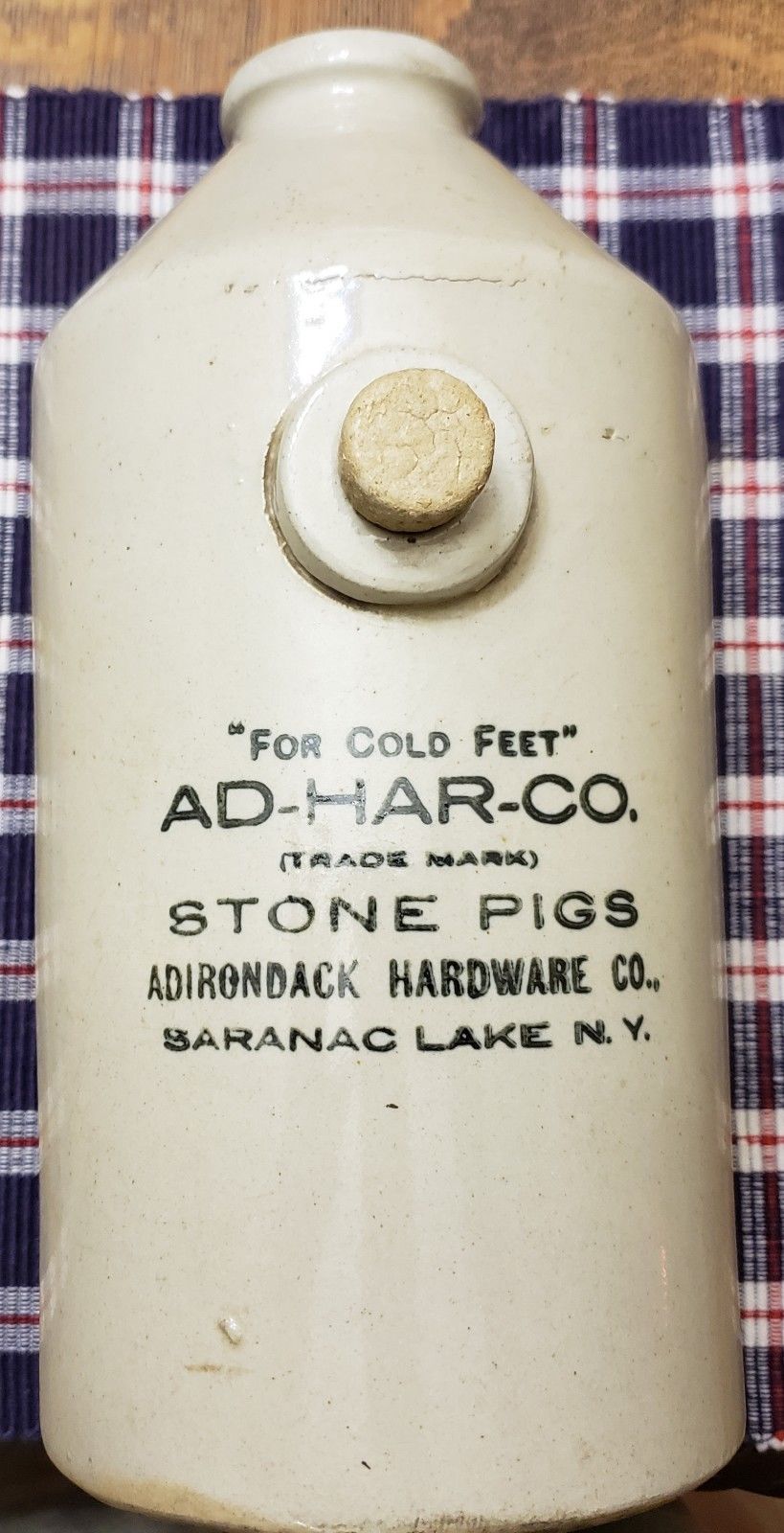Title (ebay affiliate link): Old Stoneware Hot Water Bottle/Jug Foot Warmer w/ plug, AD-HAR-CO, STONE PIGS.