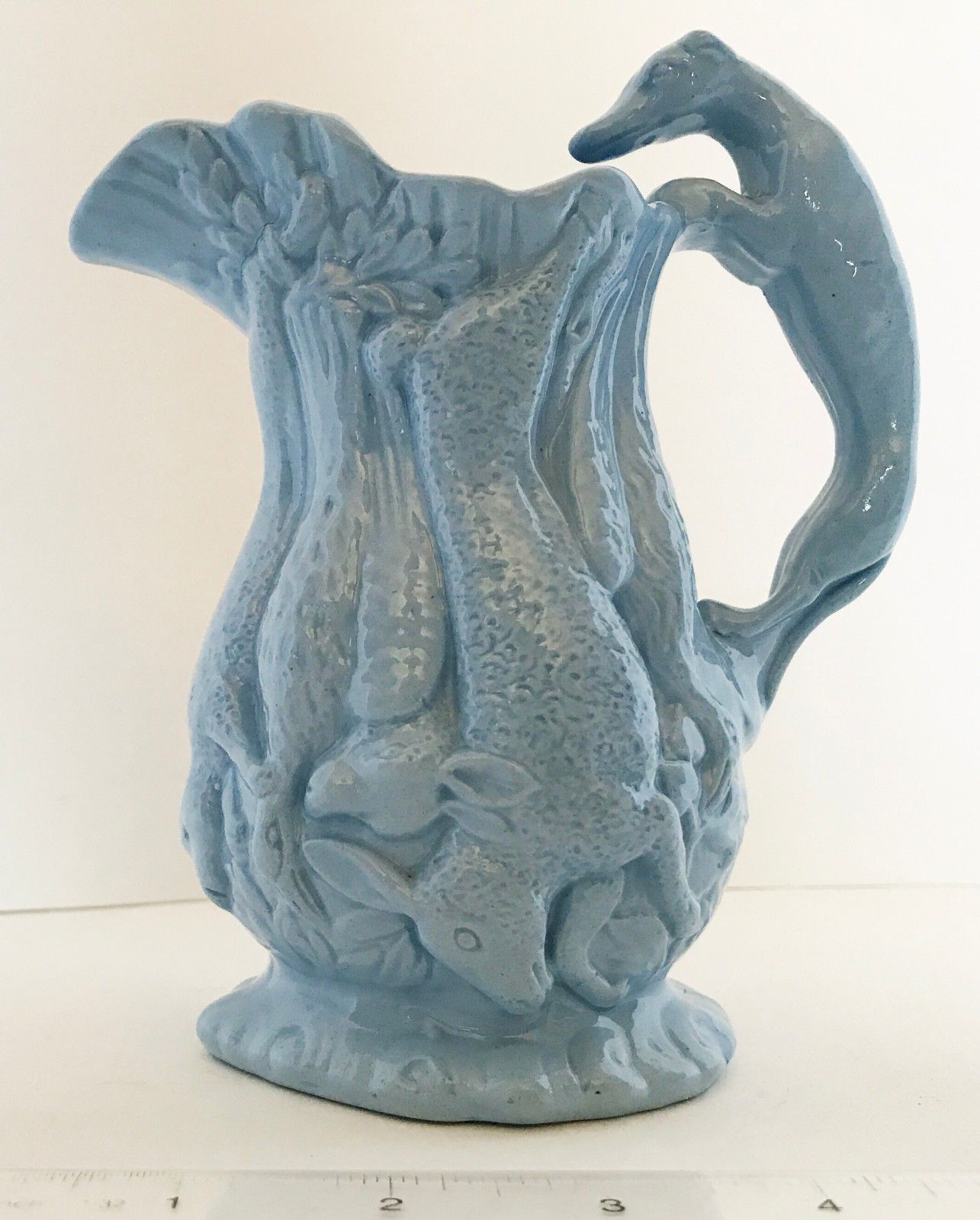 Title (ebay affiliate link): Antique Old English Blue Porcelain Hunting Game Animals Greyhound Pitcher