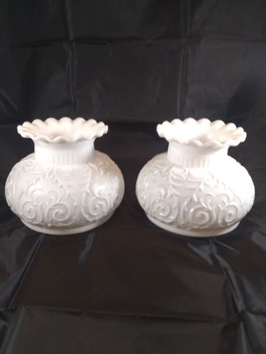 Title (ebay affiliate link): VINTAGE WHITE MILK GLASS HURRICANE LAMP SHADES~GLOBE RUFFLED TOP