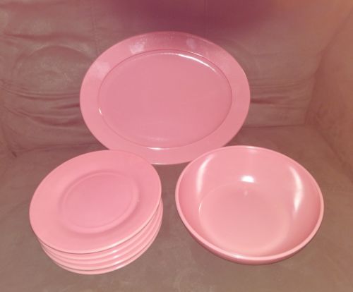 Vintage Hazel Atlas Pink Milk Glass Dishes Bowl Oval Serving Platter Plate RARE