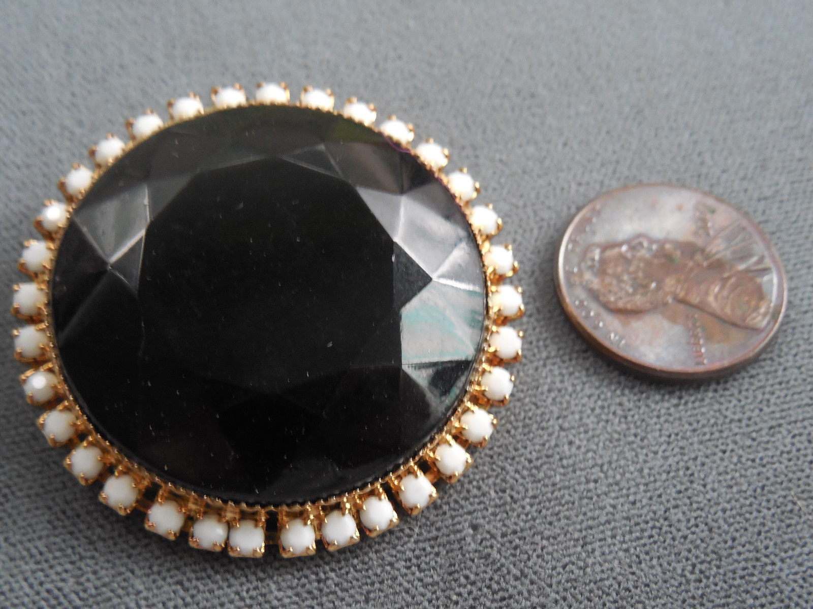 Title (ebay affiliate link): Vintage NOS quality large black faceted glass milkglass pin brooch A19