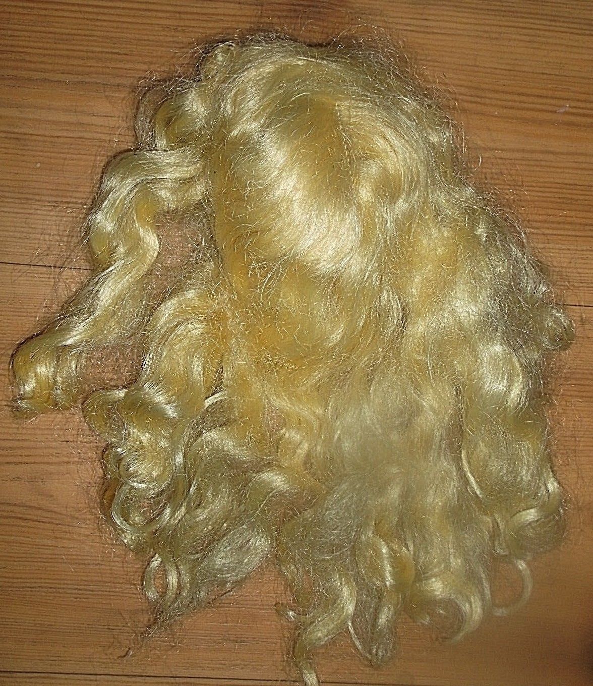 Title (ebay affiliate link): Vintage 1950s bright blonde synthetic wig for antique bisque doll, size 15