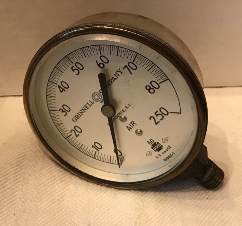 Title (ebay affiliate link): Grinnell Co. Vintage Brass Air Gauge #60